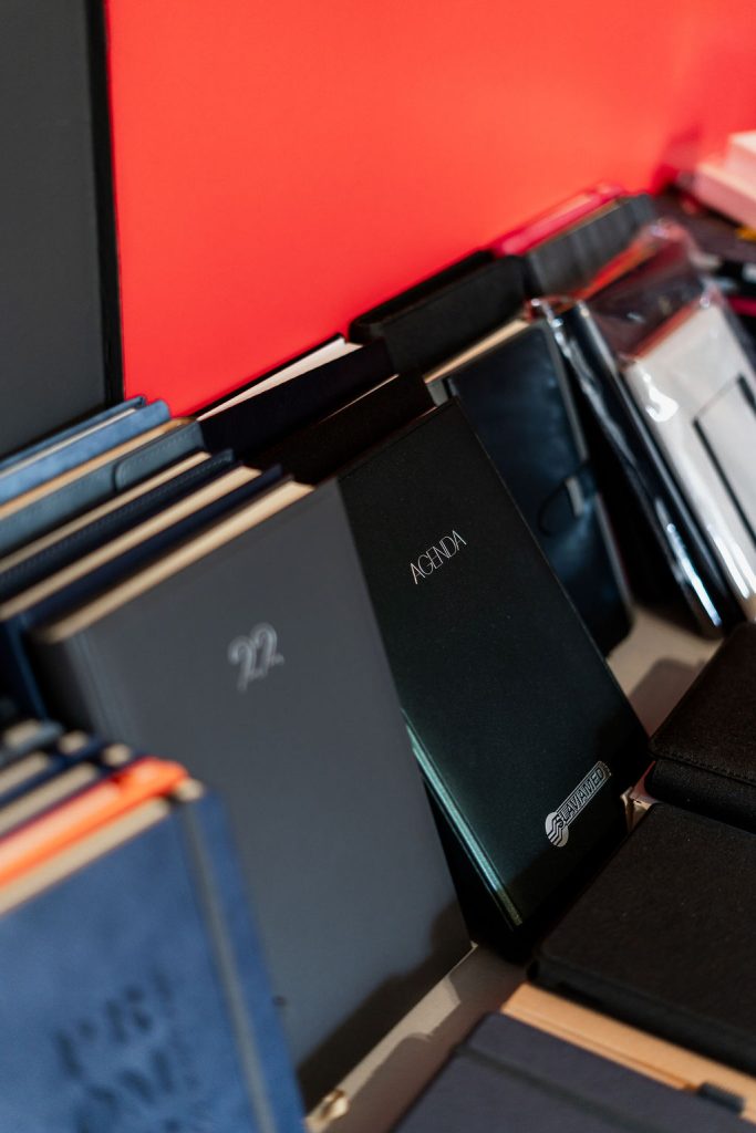 Kombinovanjem odgovarajućih materijala, boja i tehnika, postiže se elegantan dizajn koji ne ometa praktičnost, već je naglašava. Na taj način, brend ostaje prisutan u svakodnevnim situacijama, na radnom stolu, u torbi, na događajima ili sastancima.